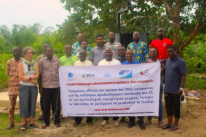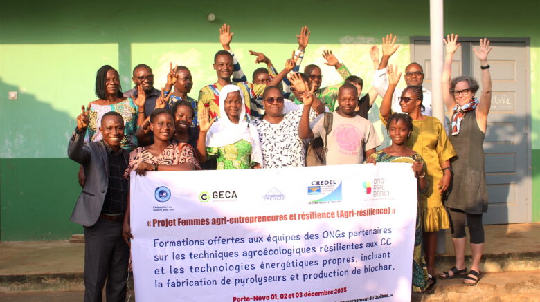 Le projet « Femmes agri-entrepreneures et résilience » (Agri-Résilience) vise à renforcer les capacités des femmes et des jeunes dans les communes de Comé, Grand-Popo et Porto-Novo face aux effets des changements climatiques. En réponse aux recommandations formulées par les groupements des ONG RAIL et APRETECTRA lors du rapport de diagnostic élaboré par le Centre de Recherche et d’Expertise pour le Développement Local (CREDEL ONG), des formations ciblées ont été offertes aux ONG partenaires et aux services techniques agricoles sur les techniques agro-écologiques résilientes et les technologies énergétiques propres. « Ce projet est réalisé grâce à la participation financière du gouvernement du Québec. »